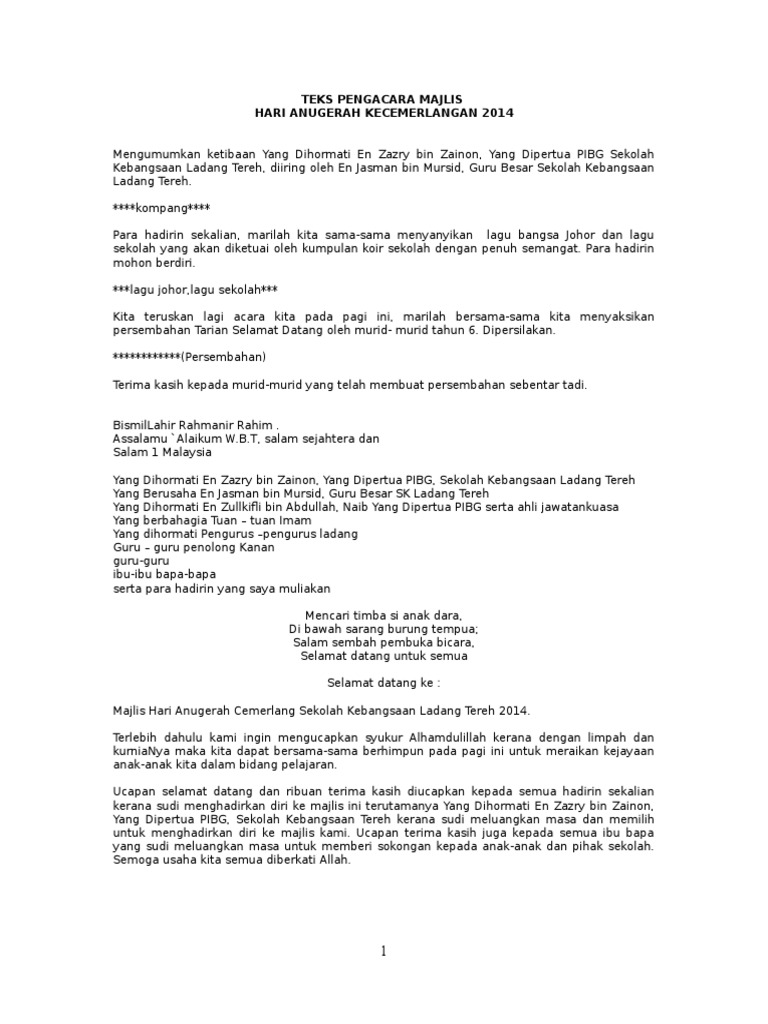 Teks Pengacara Majlis Anugerah Kecemerlangan Pdf Document