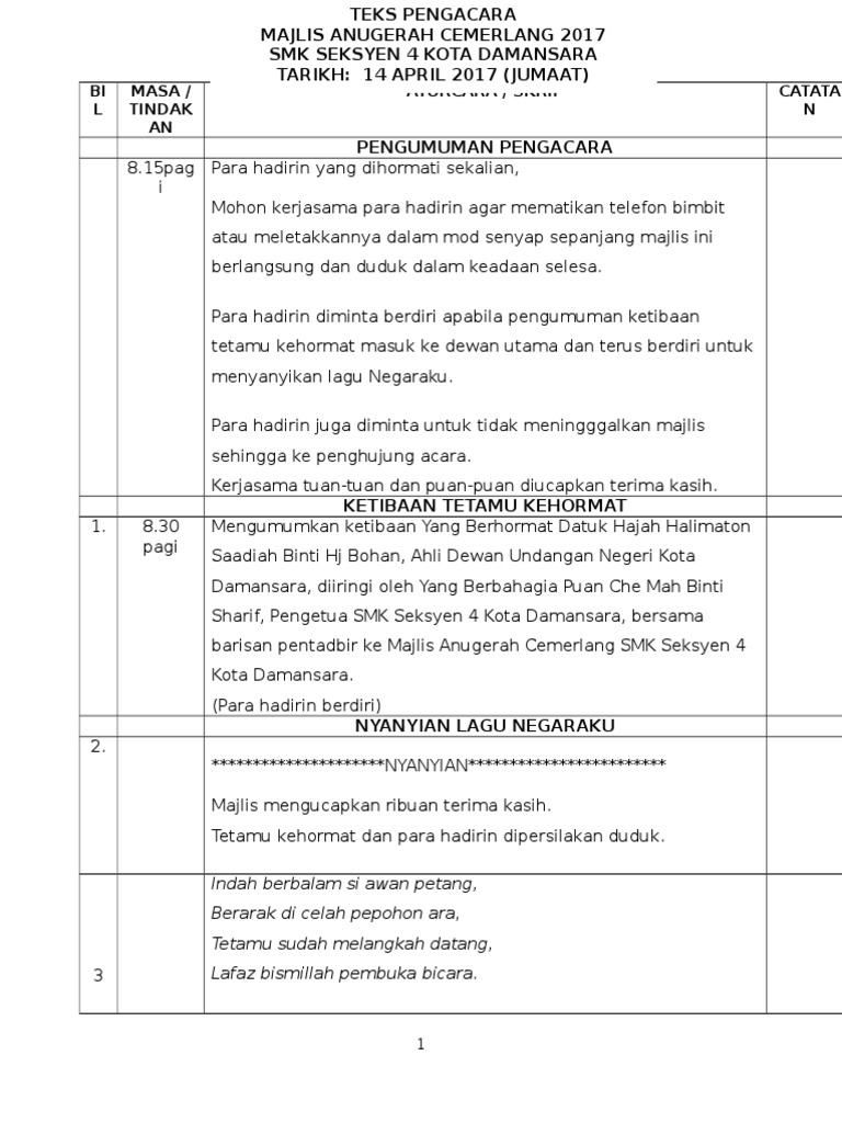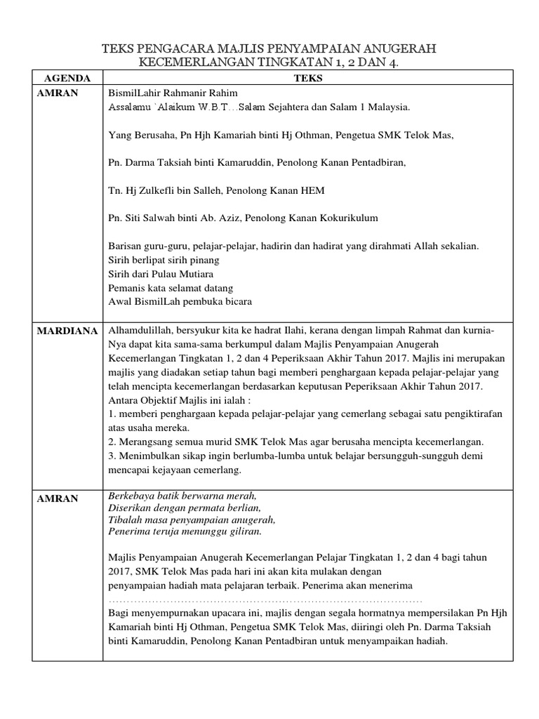 Teks Pengacara Majlis Hari Anugerah Kecemerlangan Pdf